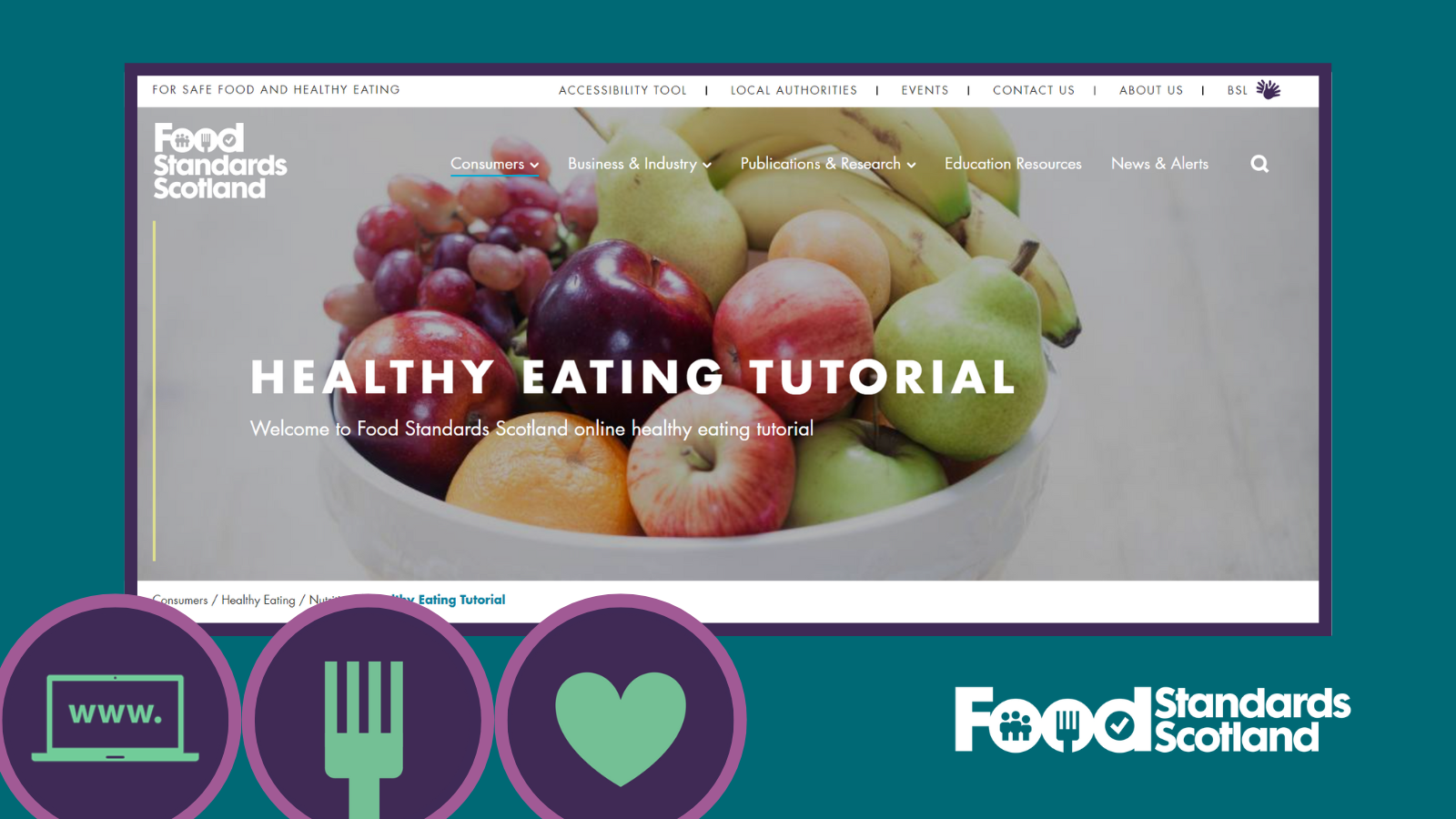 Our updated Healthy Eating Tutorial is a helpful tool for those who are looking for an introduction to nutrition and who may be required to provide healthy eating messages to others as part of their job. This tutorial may also be of interest to consumers who want to learn more about healthy eating. The tool aims to demonstrate the importance of a healthy diet and what it’s comprised of; as well as outlining the advice and support available to achieve it.